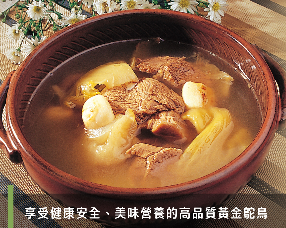朱大哥擁有飼養鴕鳥超過20年的經驗。雖然幾乎全年無休,但因鴕鳥、飼養過程非常人道與環保,他仍樂在其中。鴕鳥肉口感類似牛肉、無狂牛病、零脂肪、鐵質含量是牛肉的1.3倍、鋅質是蜆的17倍,生蠔的2倍、蛋白質比很多肉品高、必需胺基酸含量高、多元不飽和脂肪酸含量高,更是美國心臟協會營養指導方針中建議食用之肉類,是非常健康的紅肉,而且骨頭非常硬。朱大哥用心經營,就是為了推廣好肉品讓更多朋友知道。